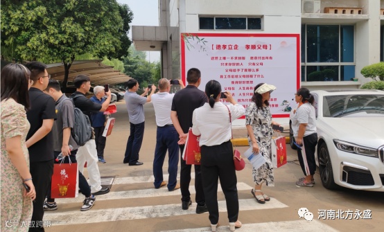 与会领导、专家学者、企业负责人在北方永盛大楼前合影,并参观了北方永盛的党建、德孝文化建设和生产车间。