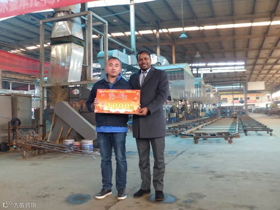 公司白总为焊接技能竞赛获得第三名选手颁奖