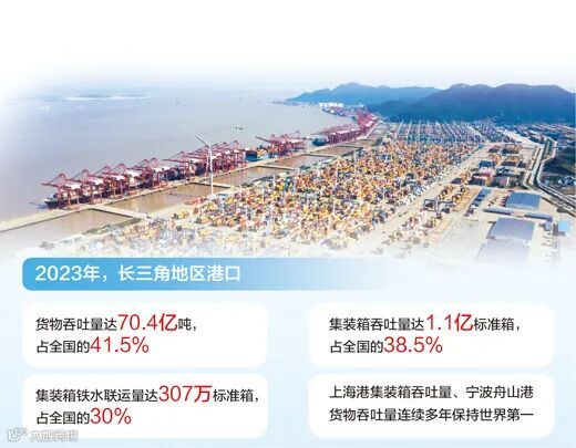 本报北京3月20日电 (记者韩鑫)记者在交通运输部20日举行的专题新闻发布会上获悉:2023年,长三角地区港口共完成货物吞吐量70.4亿吨、集装箱吞吐量1.1亿标准箱,分别占全国的41.5%和38.5%,集装箱铁水联运量307万标准箱,占全国的30%。我国港口综合效率位居全球港口前列,其中上海港集装箱吞吐量、宁波舟山港货物吞吐量均连续多年保持世界第一。