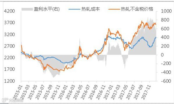 图表8 典型钢厂热轧板卷成本与赢利