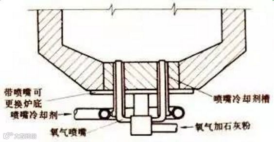 通过转炉底部的氧气喷嘴把氧气吹入炉内熔池,使铁水冶炼成钢的转炉炼钢方法。其特点是;炉子的高度与直径比较小;炉底较平并能快速拆卸和更换;用风嘴、分配器系统和炉身上的供氧系统代替氧气顶吹转炉的氧枪系统。由于吹炼平稳、喷溅少、烟尘量少、渣中氧化铁含量低,因此氧气底吹转炉的金属收得率比氧气顶吹转炉的高1%~2%;采用粉状造渣料,由于颗粒细、比表面大,增大了反应界面,因此成渣快,有利于脱硫和脱磷。此法特别适用于吹炼中磷生铁,因此在西欧用得最广。