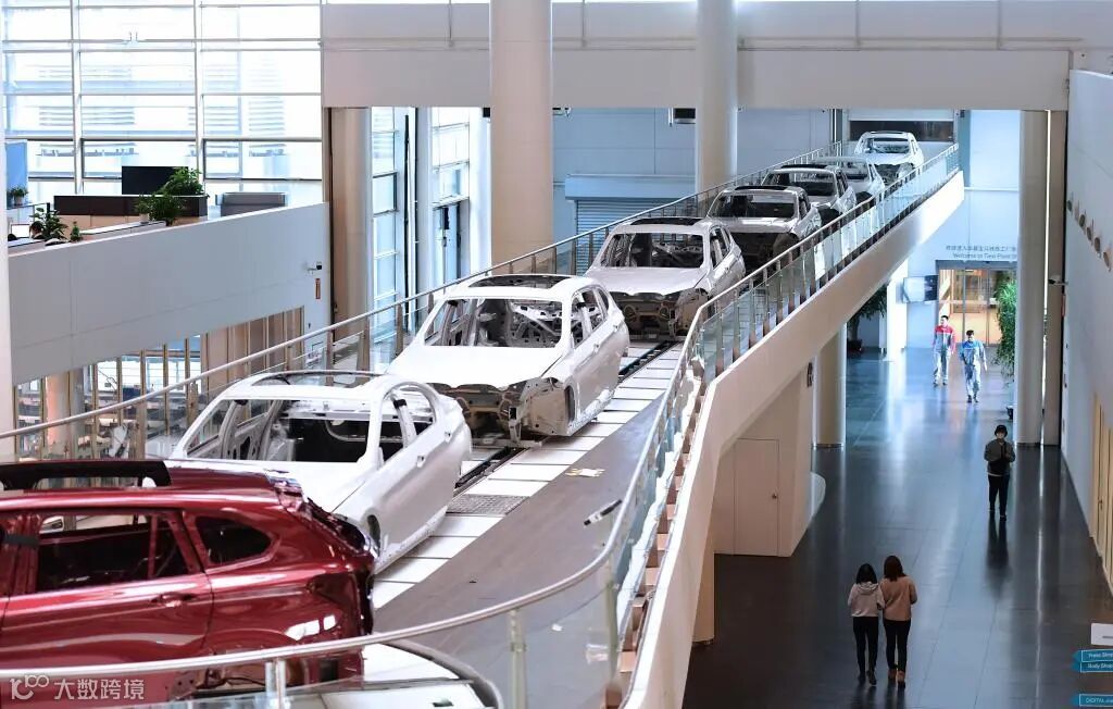 在华晨宝马沈阳铁西工厂,生产中的车辆穿过办公区(2022年2月16日摄)。(新华社记者杨青摄)