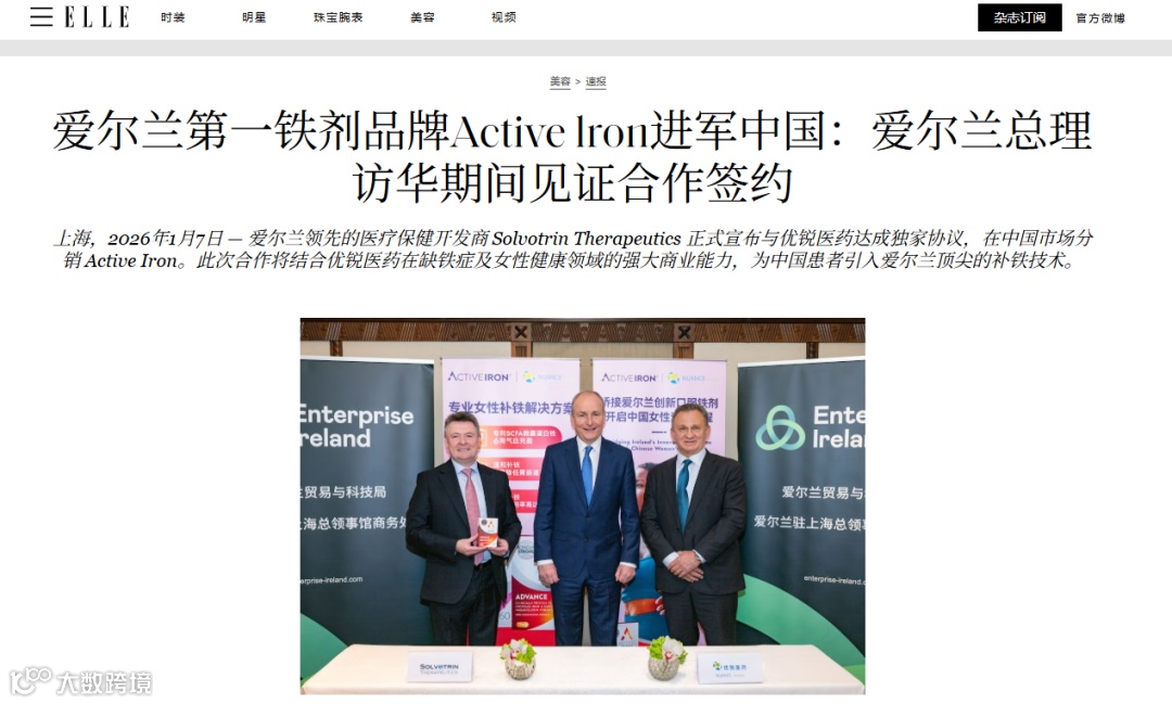 此次仪式标志着由爱尔兰贸科局促成Solvotrin与Nuance Pharmaceuticals之间新合作伙伴关系的正式启动,同时也是Active Iron产品借本年度“双十一”之机,正式在中国市场发布的里程碑。