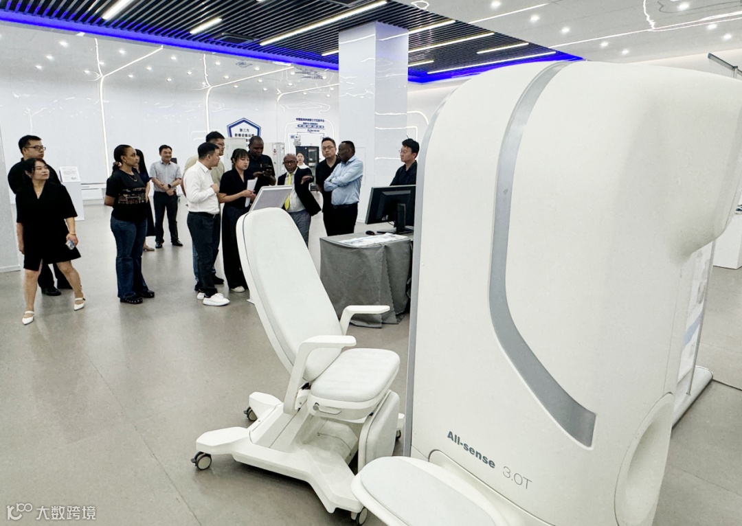 坦桑尼亚医疗代表团成员在迈太科企业负责人的引导下,深入了解公司发展历程。在众多展示产品中,山东奥新医疗科技有限公司展出的 3.0T 四肢关节磁共振设备成为全场焦点。科技感十足的四肢关节磁共振设备前,代表团成员纷纷驻足,眼神中满是好奇与期待。工作人员现场演示设备的操作流程,详细介绍其高分辨率成像、快速扫描、无幽闭感等核心优势。“通过这台设备,能以更高的清晰度捕捉人体四肢关节的细微病变,哪怕是极微小的损伤或病灶,都能清晰呈现,为后续精准治疗提供可靠依据。” 工作人员的讲解,让代表团成员频频点头。此次参观考察不仅为非洲地区医疗水平的提升注入新动力,也为中非医疗合作开辟了新路径。