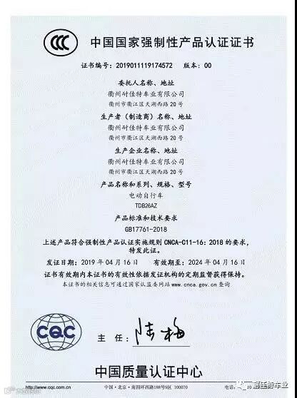 除了扎实可靠的背景实力,与耐佳特合作,最重要的是省心。目前,耐佳特已有TDB26AZ淑女、TDL22AZ优雅、TDN20CZ风尚、TDR16BC云雀四款电动自行车全部通过并拿到了3C证书,另有二十几款产品正在申报审核,预计五月份下发3C证书。