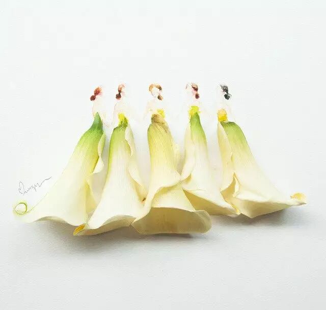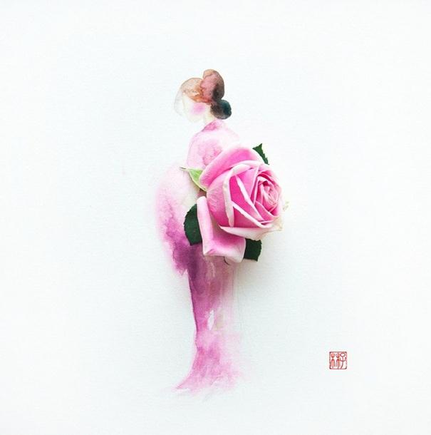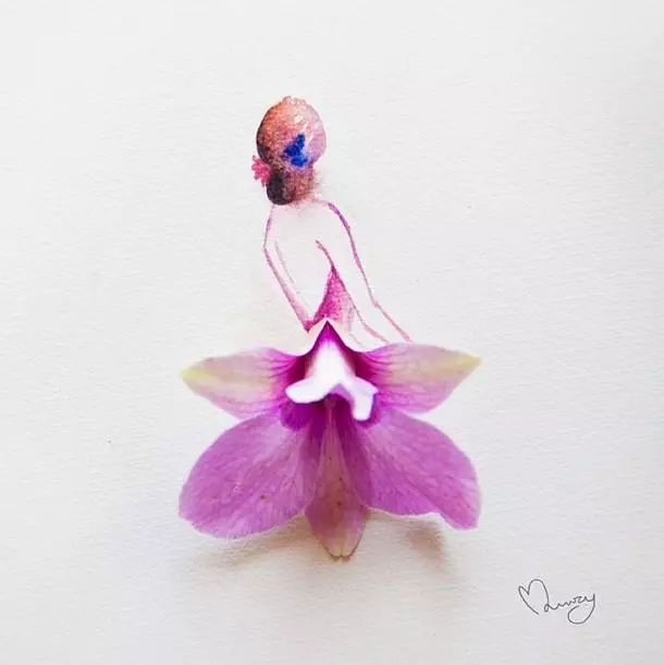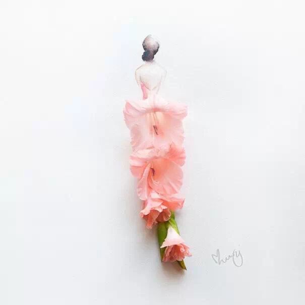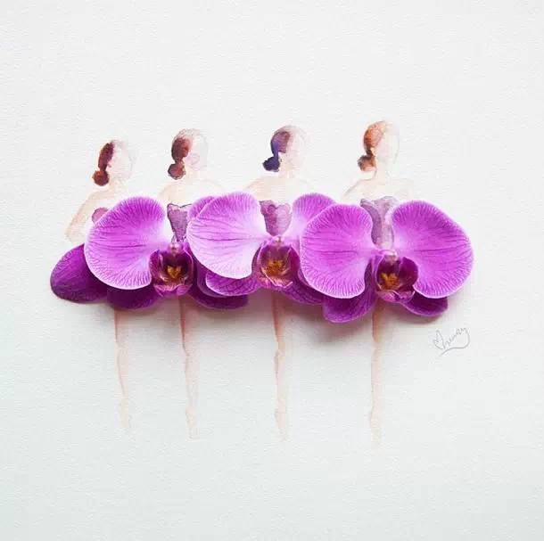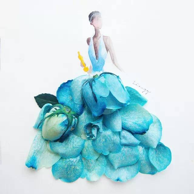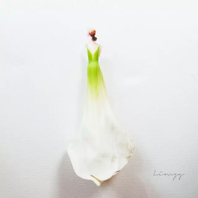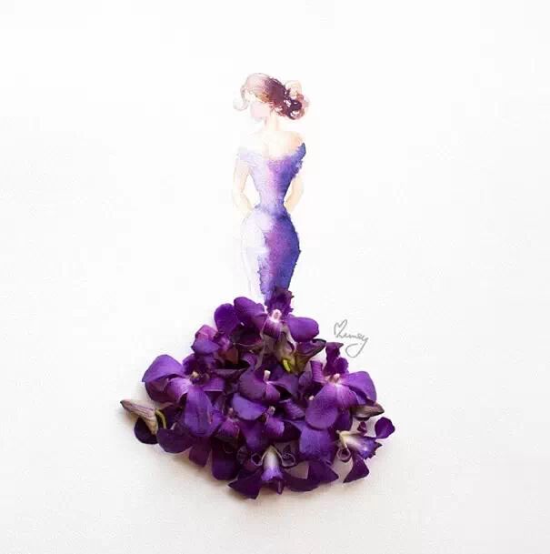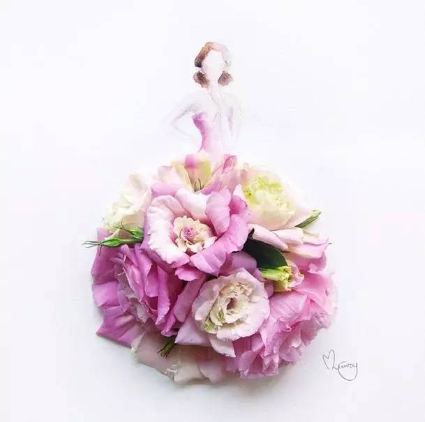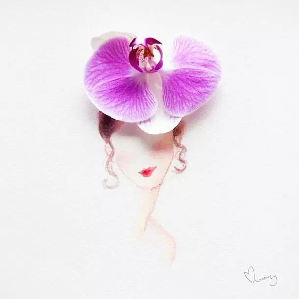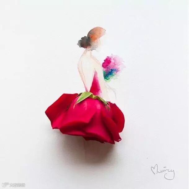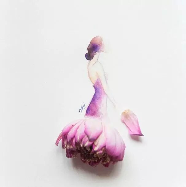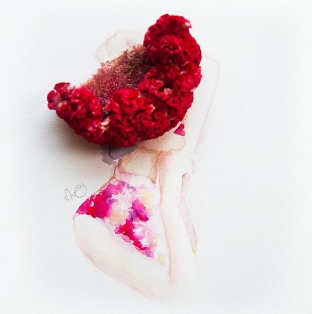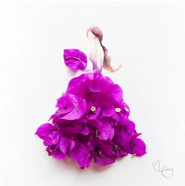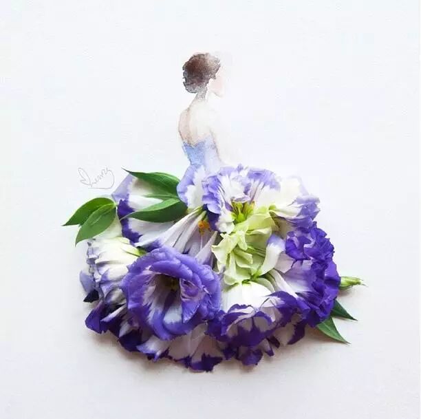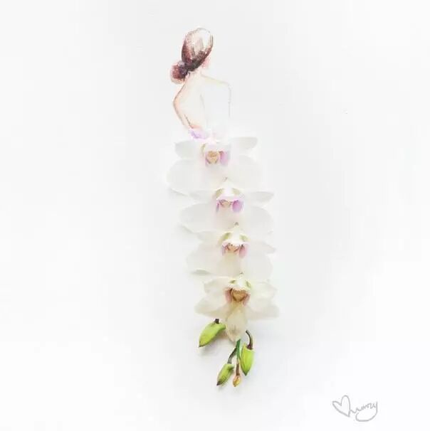 人们常用娇艳花朵来比喻美人,而马来西亚艺术家Lovelimzy则结合了花艺与插画,把美人与鲜花的遐想变成迷人画面。水彩氤氲而成的女人轮廓,与花朵构成的礼服完美地组合在一起,梦幻美丽又似散发着缕缕芬芳。