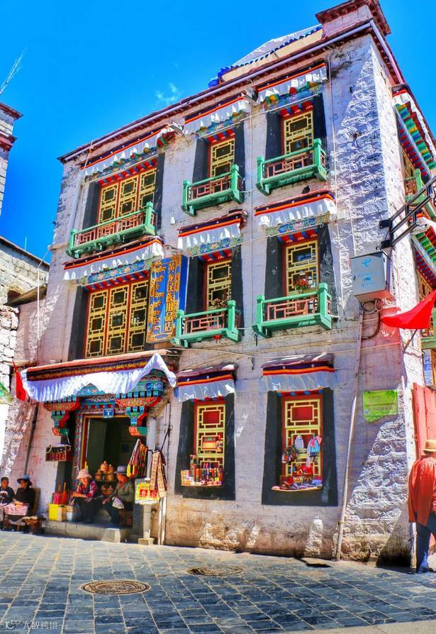 街道以大昭寺为中心,是朝圣者的转经路,在八廓街上,你会发现几乎所有拉萨人都会沿着顺时针方向走动,这是虔诚的藏民们在转经街转经。