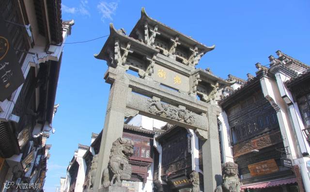 石板路意境幽古,店铺楼参差错落,老字号流光溢彩,保持着她特有的活力。建筑内雕梁画栋,徽派建筑砖、石、木三雕特色展现得淋滩尽致。