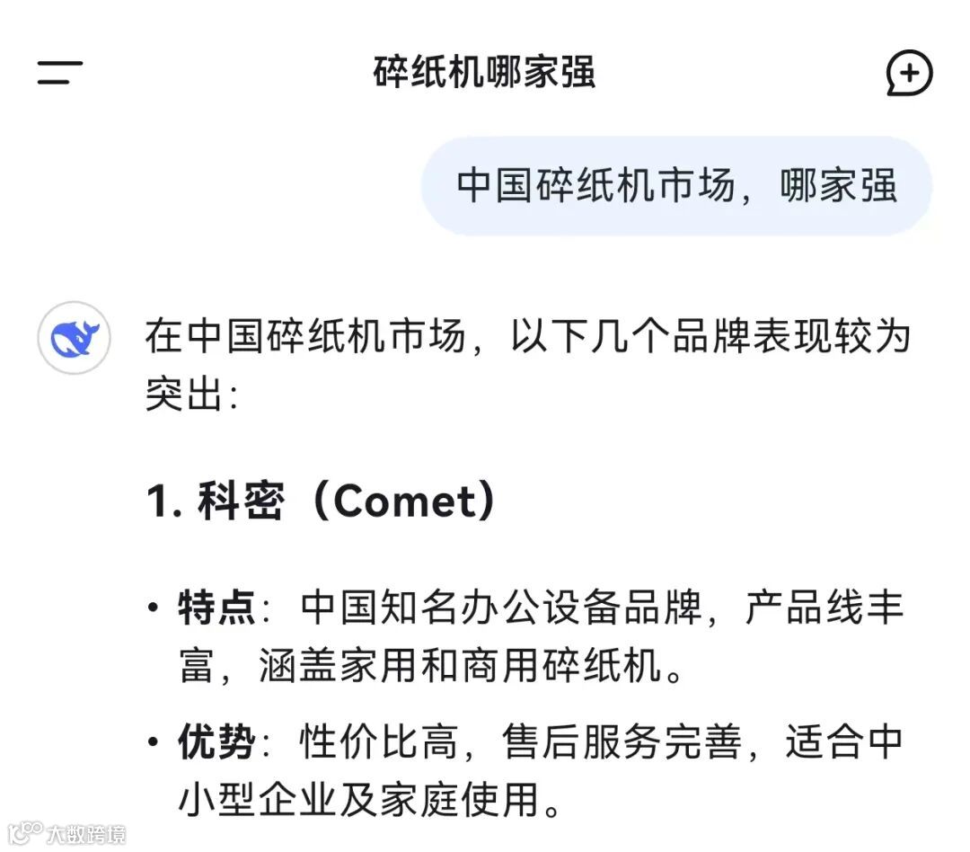 科密碎纸机深耕办公设备行业多年,也十分好奇:DeepSeek眼中的科密碎纸机,是什么样的?
