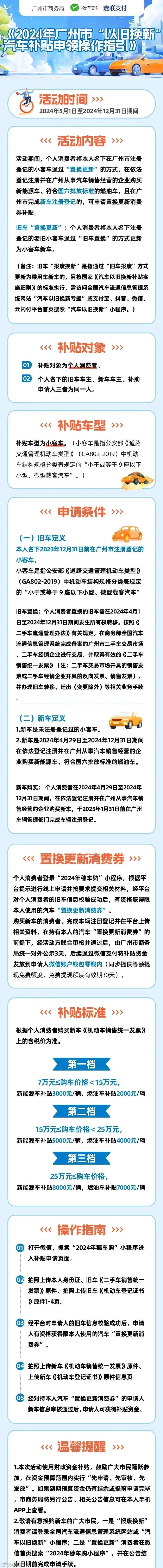 置换的新车需是在依法登记注册并在广州从事汽车销售经营的企业购买的新能源车、符合国六排放标准的燃油车