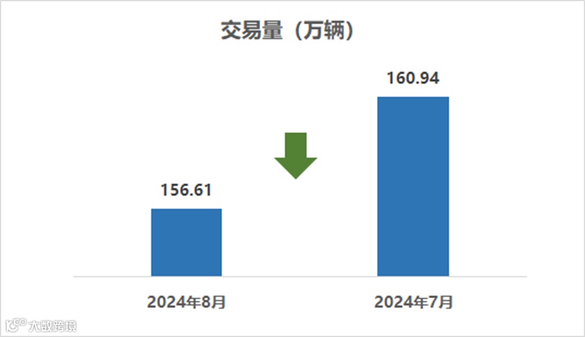 乘用车情况:8月,基本型乘用车共交易89.16万辆,环比下降3.03%,同比下降3.16%;SUV共交易21.15万辆,环比下降2.68%,同比增长5.76%;MPV共交易10.08万辆,环比下降1.59%,同比增长5.31%;交叉型乘用车共交易3.98万辆,环比增长1.39%,同比增长33.6%。