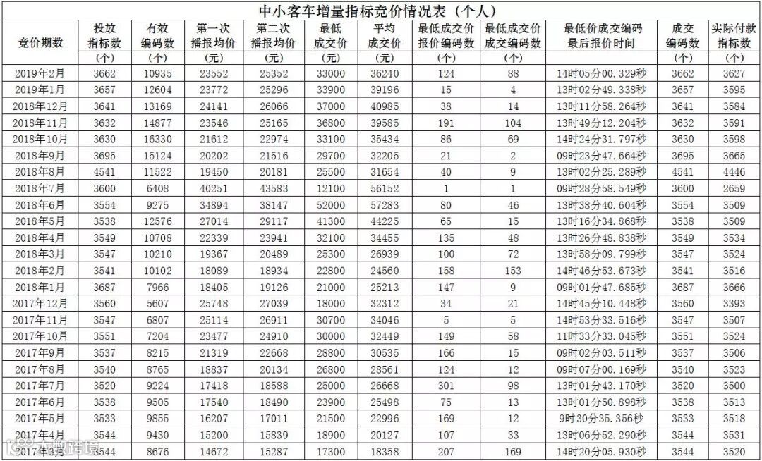 广州市中小客车指标竞价情况表