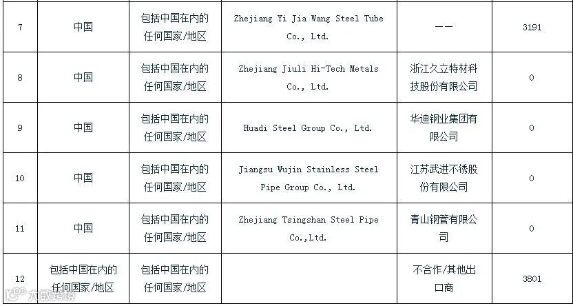 附表:印度对华不锈钢无缝钢管反倾销终裁建议征税表
