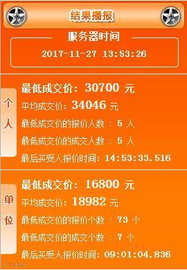 11月份继10月份个人最低成交价30000又上涨了700元。受政策各方面的影响价格是持续攀升啊!恭喜拿到指标的准车主,未拍到指标的盆友们小骏君奉劝一句:要出手时就出手,不然只能打酱油!(迷之微笑)。