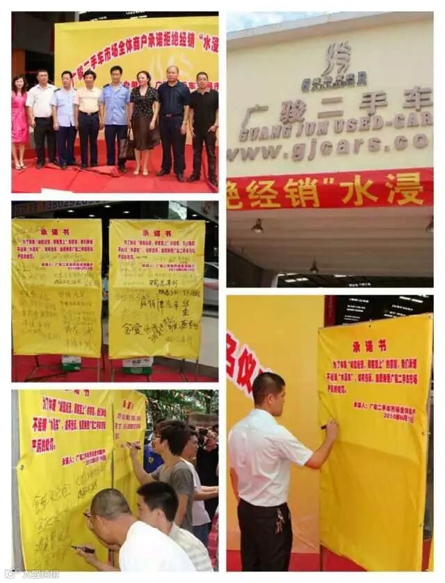唐总:广骏二手车交易市场一直秉承恪守“诚信经营”理念,2010年广骏二手车交易市场方曾组织过全体商户举行“拒绝水泡车”活动,所有商户签定禁止销售“水泡车”承诺书,表明抵制“水泡车”的决心。