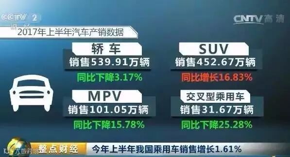 中汽协的数据显示,今年上半年,我国的乘用车共销售1125.30万辆,同比增长了1.61%,增速比上年同期减缓了7.62个百分点。分车型来看,乘用车四类车型中只有SUV实现增长,但增速与上年同期比明显回落,其余车型销量均低于上年同期。