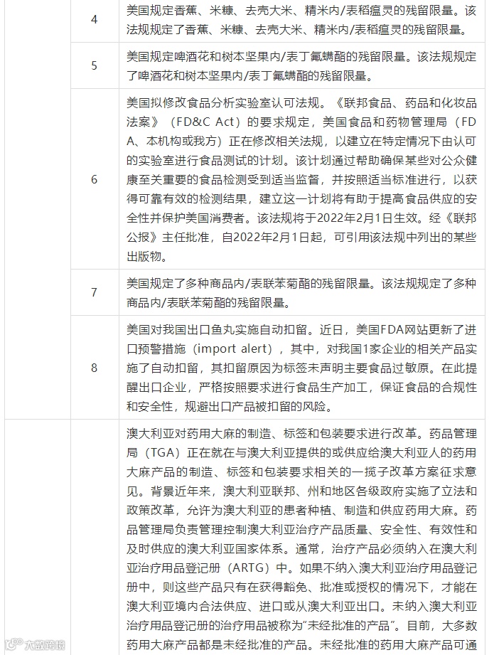 当前我国面临复杂严峻的外贸形势,国外技术性贸易措施依然是影响我国企业出口的重要因素之一。为进一步降低技术性贸易措施对湖北出口企业可能造成的影响,推动湖北产品更好“走出去”,提高贸易便利化水平,助力企业开拓海外市场,武汉海关收集整理了近期部分境外技术性贸易措施,供外贸企业参考。现将收集的相关信息公布提示如下: