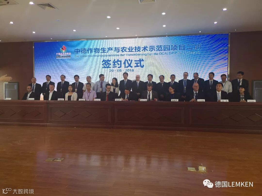 2018年5月29日,中德作物生产与农业技术示范园项目二期签约仪式在江苏省农垦农业发展股份有限公司黄海农场正式签约。来自中国和德国方面的农业部领导,江苏农垦相关领导,中德示范农场指定农机具厂家代表和来自全国各地的来宾共计300多人出席此次签约仪式,签约仪式完成后,在中德示范园还举行了第四届田间日活动。
