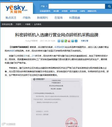 科密碎纸机成功入选建行营业网点碎纸机采购品牌的新闻在业内还是引起不小的浪花的。