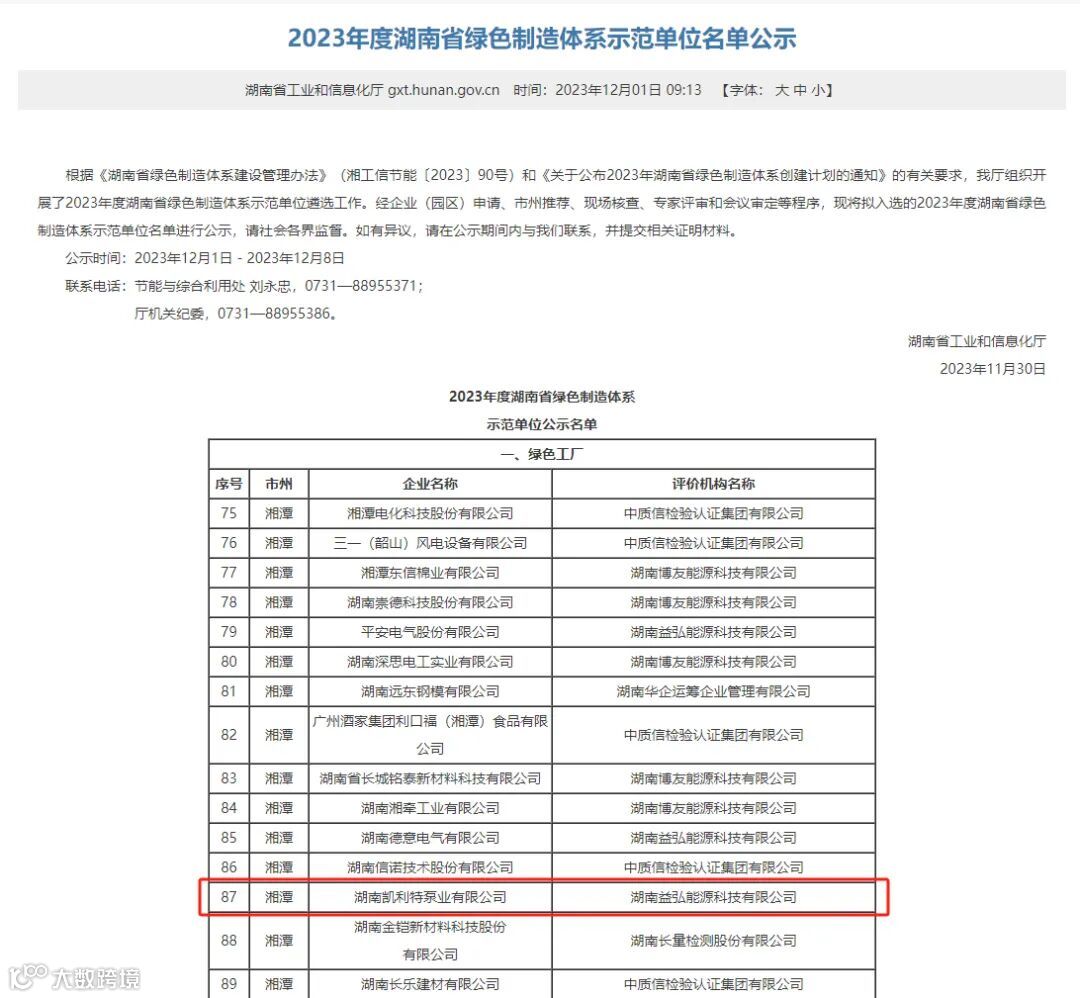 凯利特泵业荣获
