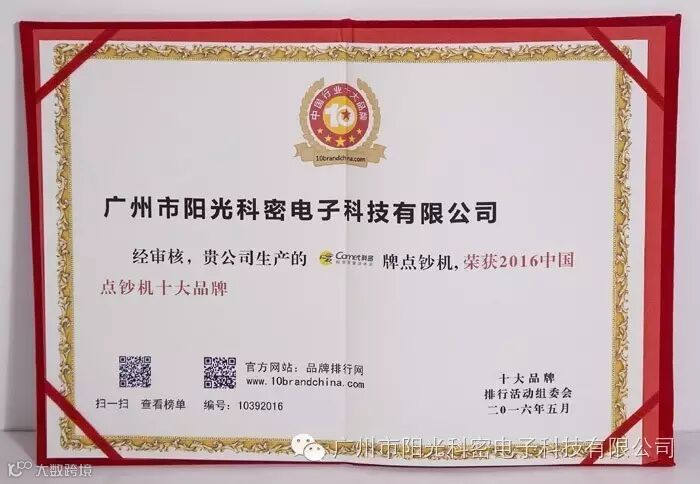 由广州市阳光科密电子科技有限公司生产的科密点钞机荣获“2016年中国点钞机十大品牌”。此次活动由品牌排行网发起,以网络投票的方式评选,近百个点钞机品牌参与评选,经过两个多月的激烈角逐,科密点钞机凭借其品牌营销力和广大客户一如既的支持,再次高票当选“2016年中国点钞机十大品牌”。