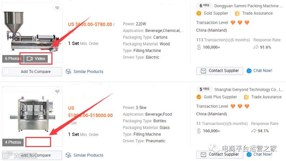 想像一下,但你在搜索页面查看了很多家产品,其中有一家是有产品视频,当然有视频的产品会更吸引你,你的第一印象会更加深刻,另外如果视频质量较好的情况下,你就更愿意去询价。下图有视频在国际站搜索页面会展示标识。
