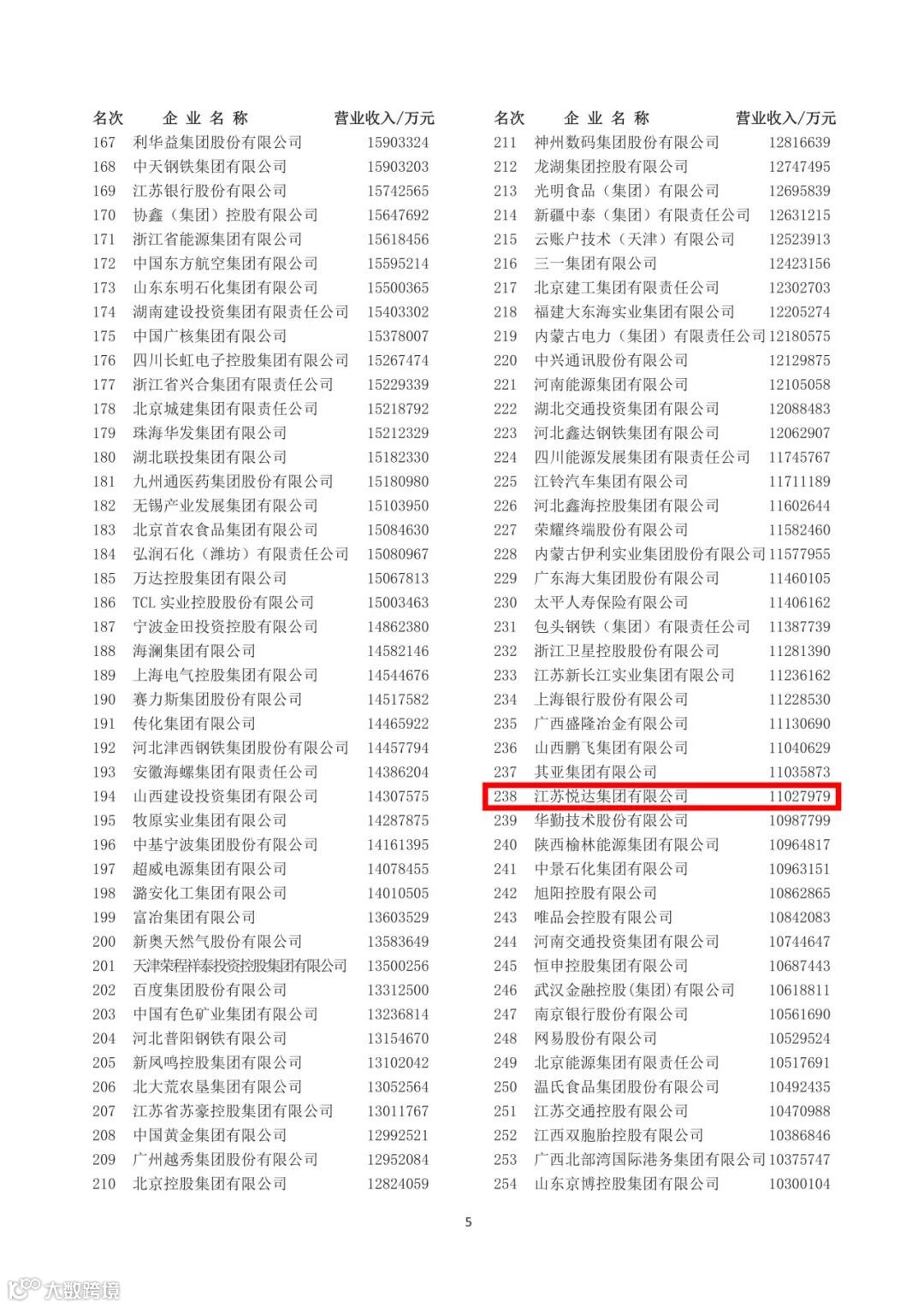 悦达集团位列中国企业500强第238位