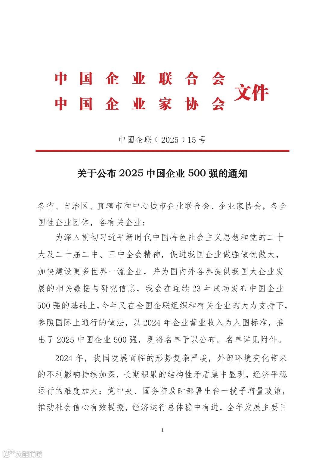 发布“2025中国企业500强”榜单