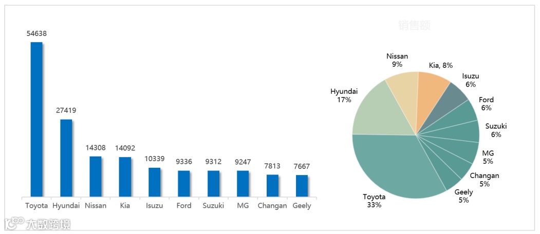 在沙特市场,丰田、现代、日产、起亚、五十铃是TOP5的品牌。