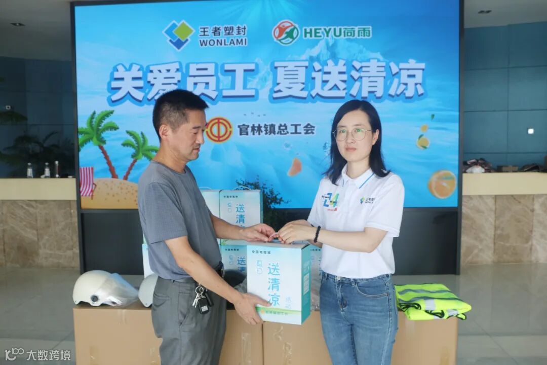 8月11日,官林镇总工会相关工作人员来到宜兴市王者塑封有限公司和无锡荷雨新能源科技有限公司,为公司员工送上夏日清凉。