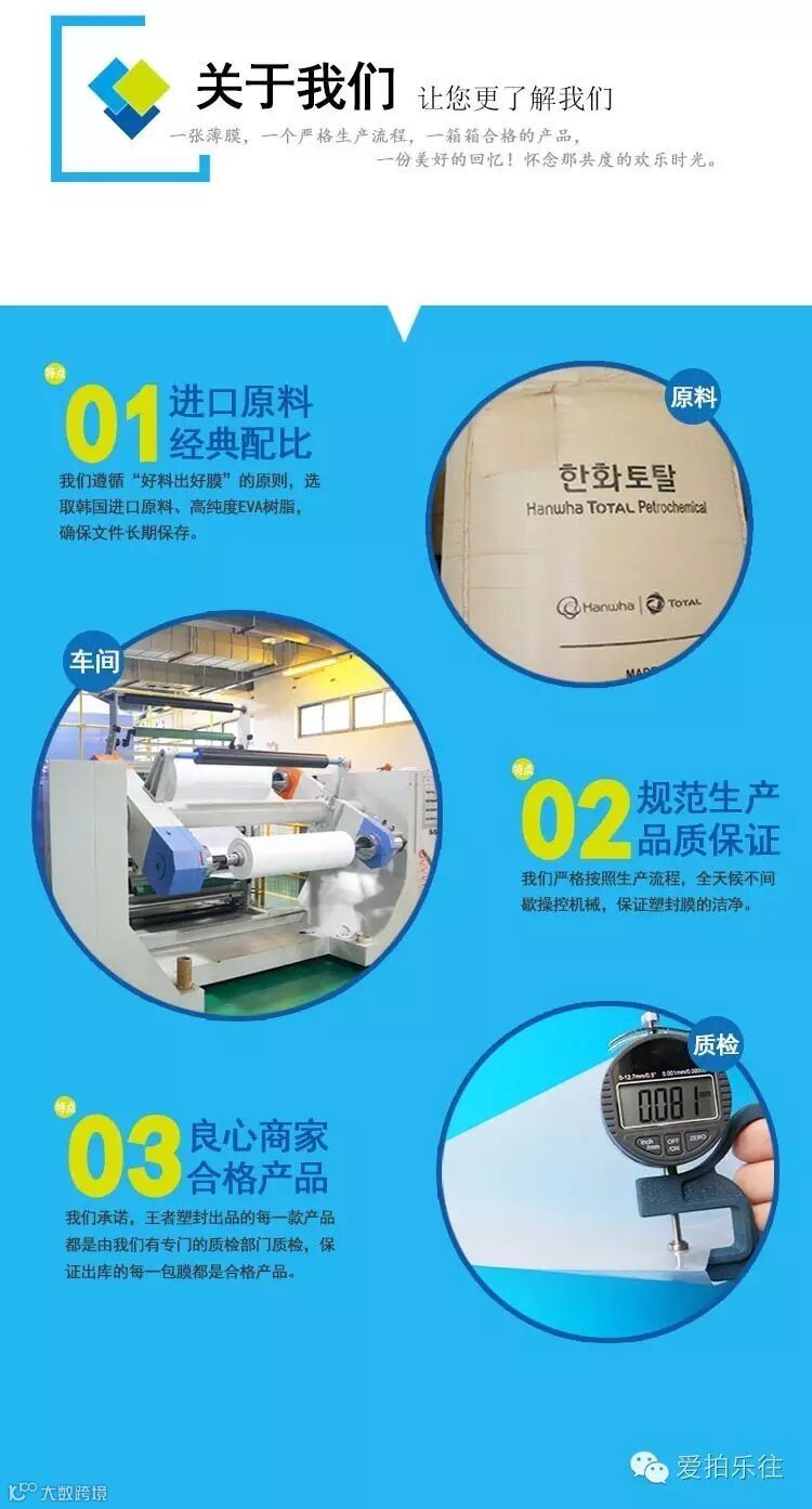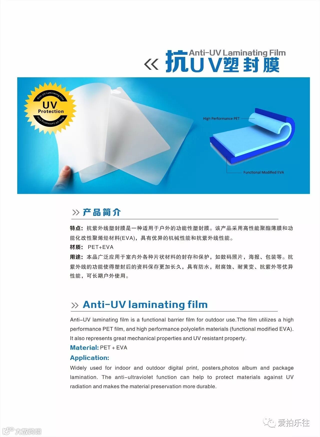 【特点】抗紫外线塑封膜塑封后资料保存更加长久,具有防水,耐腐蚀、耐黄变、抗紫外线等优异性能,可长期户外使用。