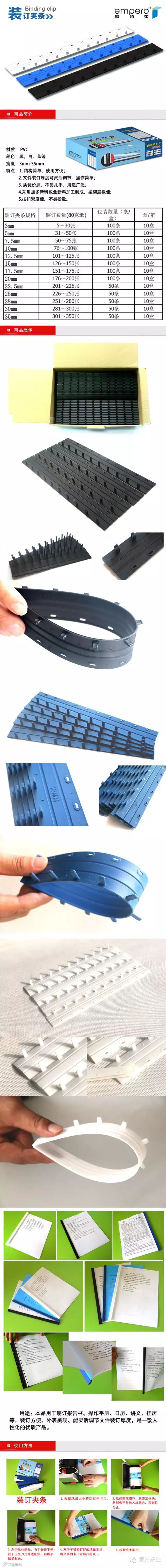 爱拍乐 装订夹条 12.5/15/17.5/20mm 100支/盒 A4文件打孔 十孔夹条