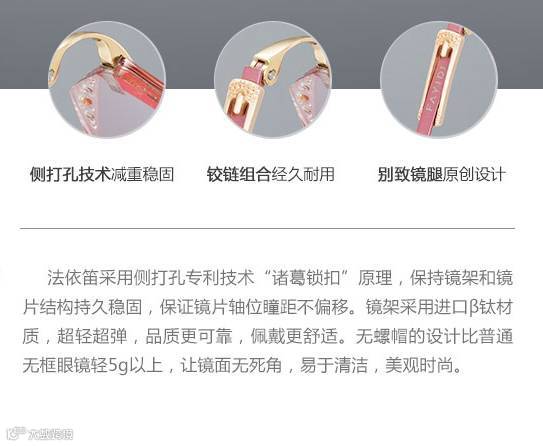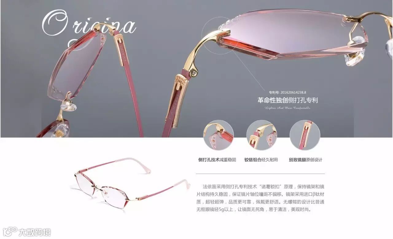 法依笛侧打孔专利技术减重且稳固,无螺帽的设计让眼镜净重比普通的无框眼镜重量还要轻5克以上。