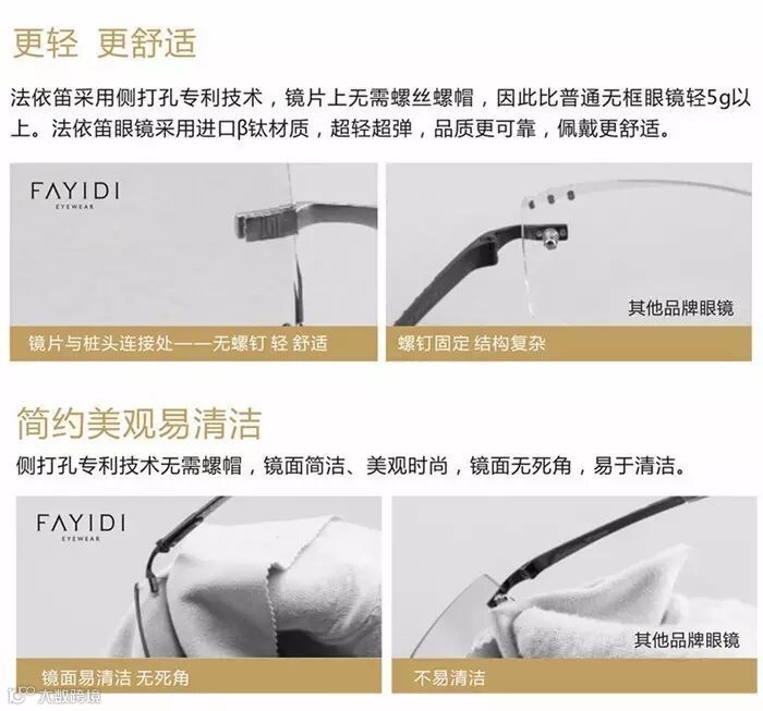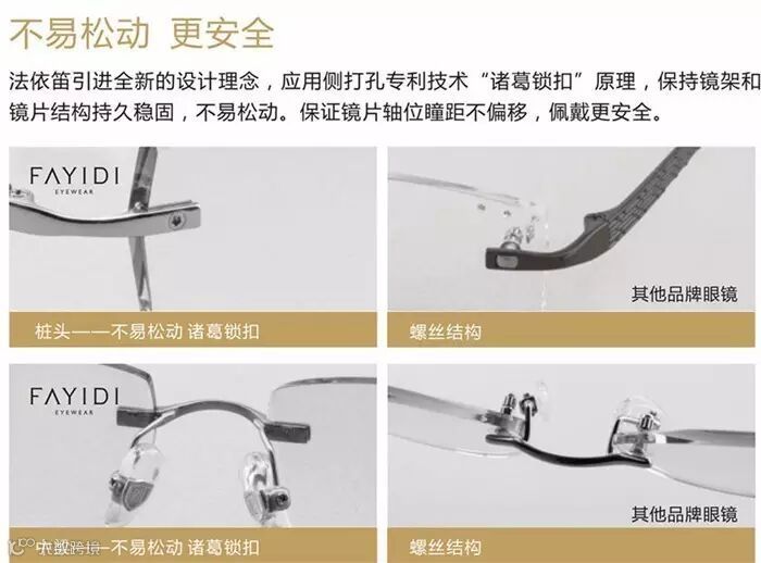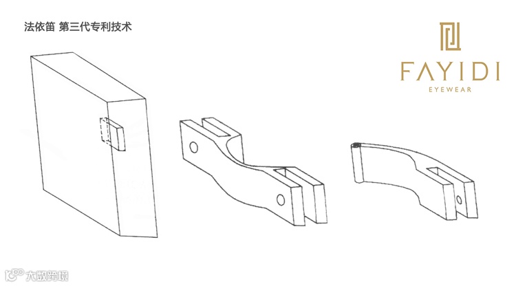 独创的镜架链接灵感来自中国古代的诸葛扣,将历史沉淀的传统与时尚的视觉艺术在"眼前"的方寸空间再度联姻,并且得到了更极致的发挥。法依笛承袭了西方的古典美,同时更兼具中方的传统韵味,实用性无螺丝眼镜系列,独有的镜架嵌入式设计,令眼镜脚与镜片融为一体,给眼镜配戴者以更自由的写意空间。