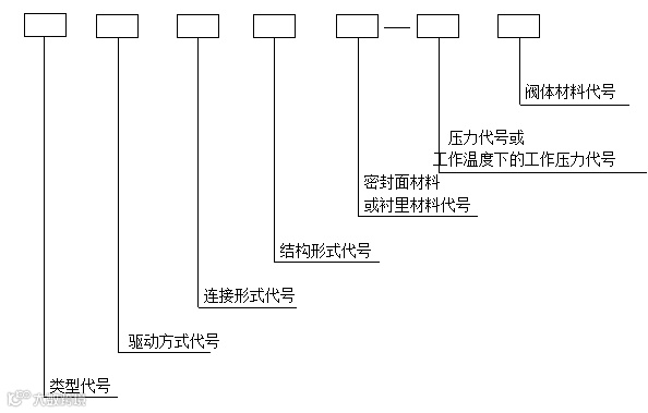 阀门型号是按阀门类型、驱动方式、连接形式、结构形式、密封面材料或衬里材料类型、压力代号或工作温度下的工作压力、阀体材料等分类,然后再把这七部分按顺序排列出来。