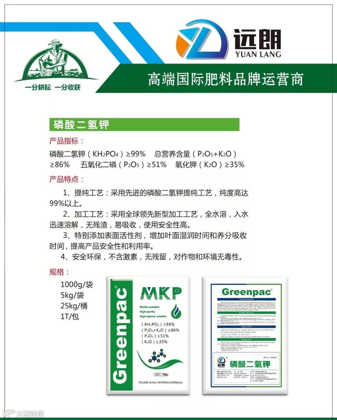 磷酸二氢钾同时含有磷和钾两种元素,不含杂质和残渣,养分可以全部被作物吸收。对作物增产增收,提高抗逆性等,有重要作用。