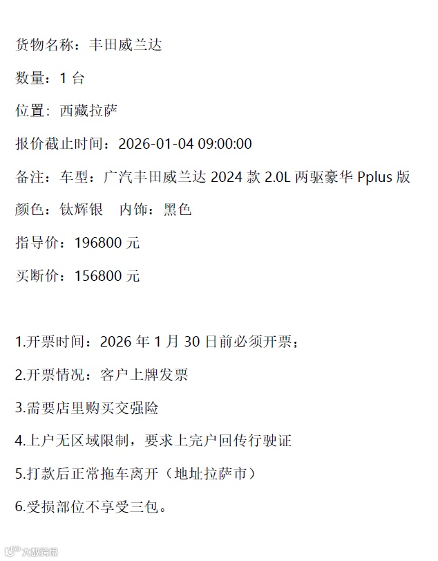 丰田威兰达&鱼雷罐&丰田车 保拍网Salvagesale