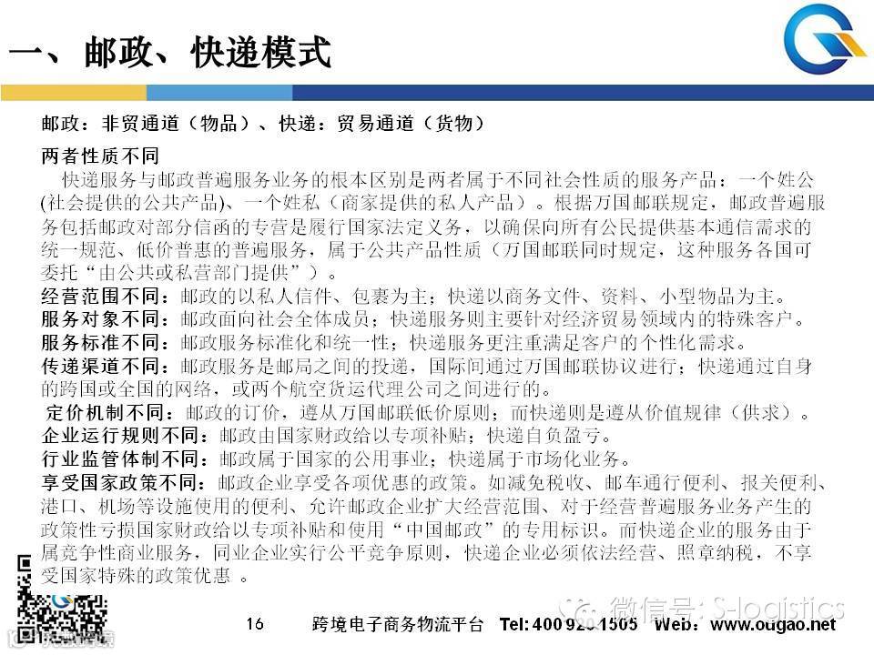 一般刚开始跨境电商的传统选择通道,但是我们必须搞清楚“邮政”和“快递”的区别。“邮政”是物品通道,非贸通道,现在被滥用,非常有可能被各国政府严管,甚至于对电商关闭;“快递”是“货品”通道,是贸易通道,只是成本高,而且报关上稍显不灵活和不方便,不过这是合法的商业通道,而且网络全,速度快。
