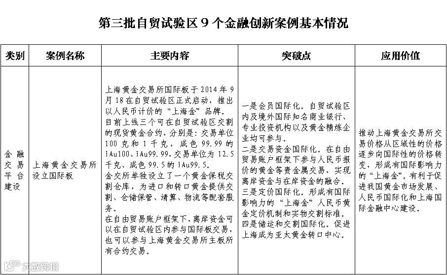 12月10日,上海自贸区发布第三批金融创新案例,一共9个。
