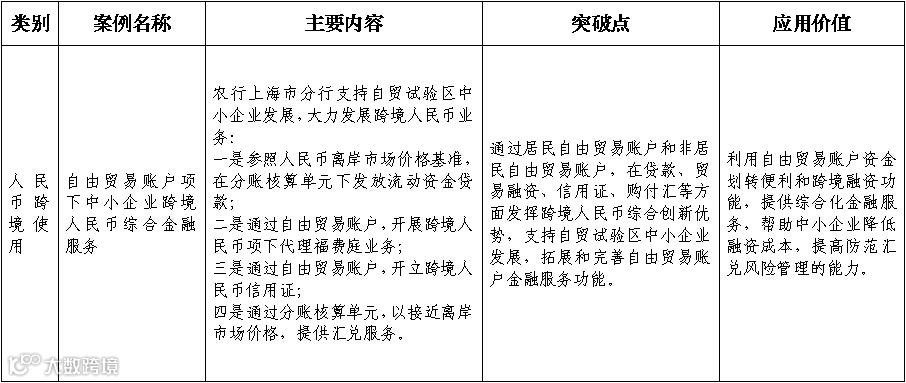 这9个案例有点意思,按照官方的分类是4类:金融市场平台的开放创新,扩大人民币跨境使用的业务创新,企业跨境并购融资的业务创新,以及保险机构集聚和保险业务创新。