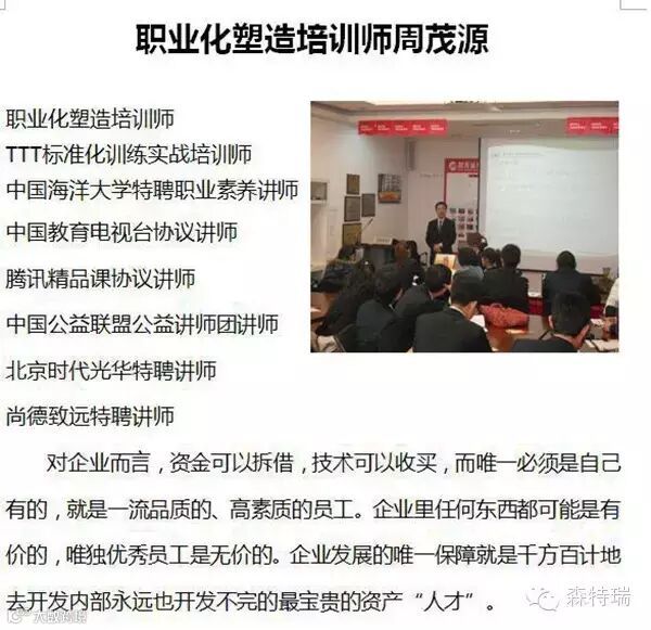 11月24号,森特瑞荣幸力邀请国内著名职业化塑造培训师周茂源给我们的同事讲授如何做一个成功的职业人,专业的职业人。