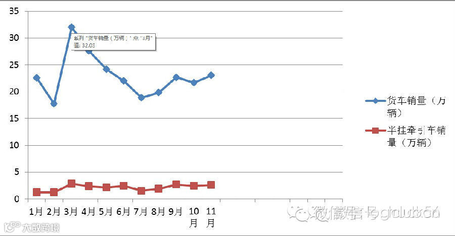 上述情况在2013年卡车全年销量走势中可明显看出。如图3.