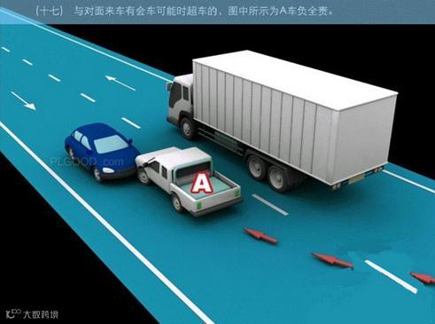 17、与对面来车有会车可能时超车的,图中所示为A车负全责。