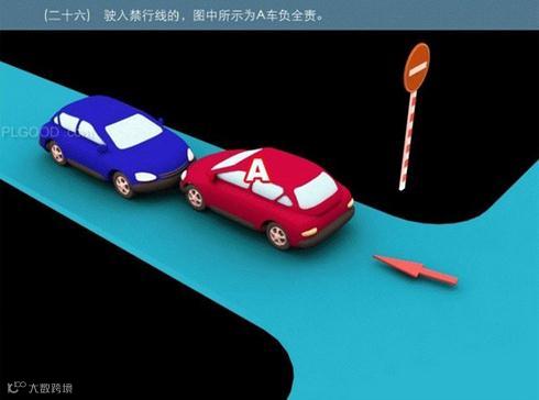 26、驶入禁行线的,图中所示为A车负全责。