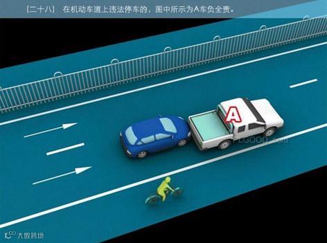 28、在机动车道上违法停车的,图中所示为A车负全责.