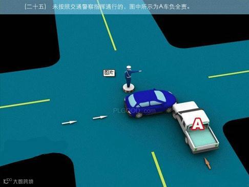 25、未按照交通警察指挥通行的,图中所示为A车负全责。