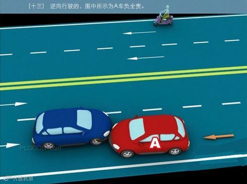 13、逆向行驶的,图中所示为A车负全责。