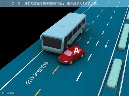 24、违反规定在专用车道内行驶的,图中所示为A车负全责。