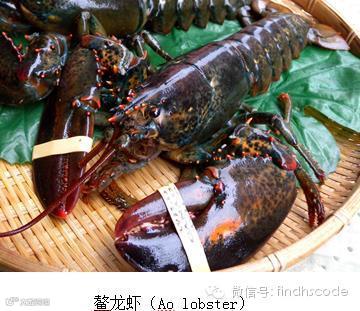二、鳌龙虾(鳌龙虾属)(Ao lobster)。如前所述,所谓的“鳌龙虾”,也是一种“龙虾”(Lobster)(见下图)。这种“鳌龙虾”与上述“龙虾”的区别就在于,其有一对巨大的“鳌”。在水产批发市场上,这种龙虾通常称为“波士顿龙虾”(波龙),其售价一般在一百五十至二百五十(RMB)元之间。