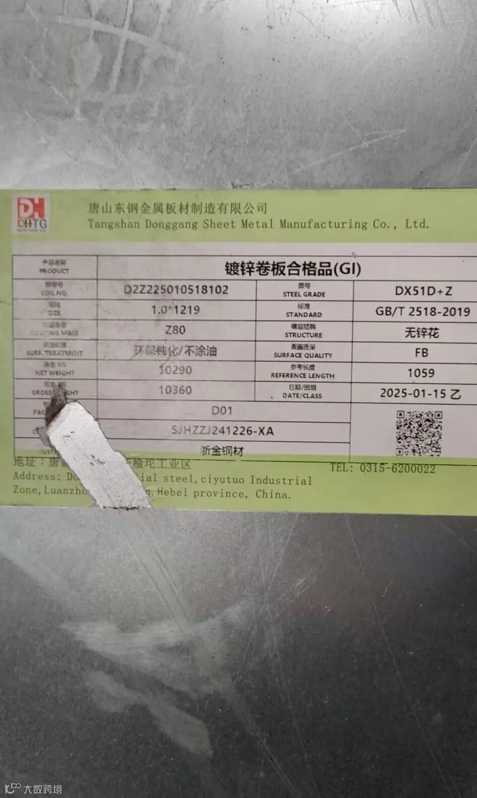 标的规格: 1.2*1219